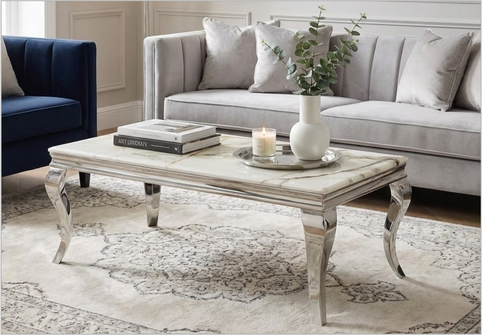 Sleek chrome base with premium marble top